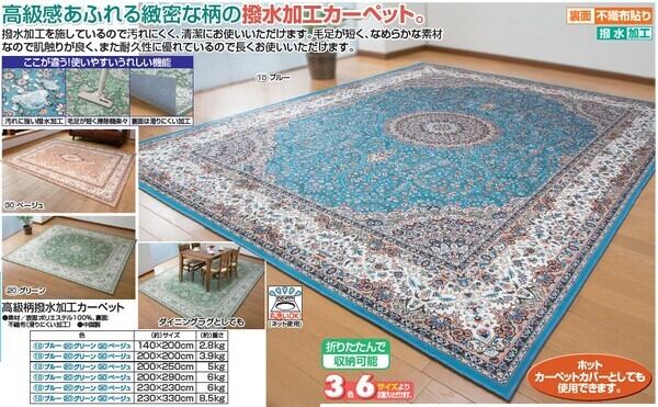高級感あふれる緻密な柄の撥水加工カーペット。