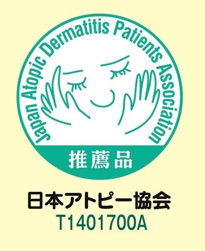このマークは、日本アトピー協会推薦品であることを表すマークです。日本アトピー協会はアトピー性皮膚炎及びアレルギー諸疾患患者の方の生活向上支援と、同疾患への正しい理解のための情報発信を行うことを目的としています