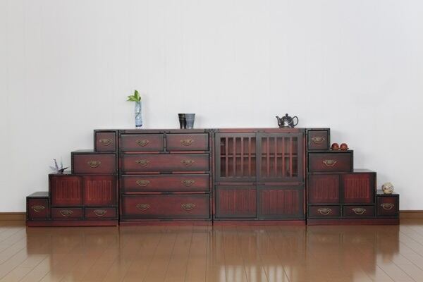 小物や衣類を収納するのに最適なチェストタイプ、茶箪笥や食器棚として使えるキャビネットタイプ、小物を収納しながらディスプレイも楽しめる階段チェストの3タイプよりお選びいただけます。