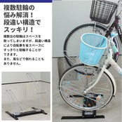 段違い構造(高低差約260mm)で、ハンドルを上下交互に収納することで、省スペース駐輪が可能。