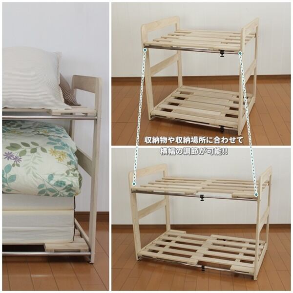 収納物や収納スペースに合わせて棚幅の伸縮ができ、無駄なく収納できます。