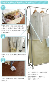 衣服が掛けられるハンガーラック付。サイドフレームにはタオル等が掛けられます。