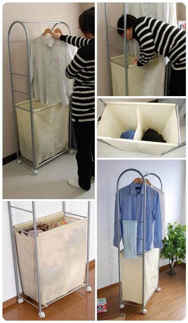 不織布バスケットは2つに分かれているので、衣服と手洗いが必要な靴下などを分けたり、色物と白物を分けたりと使い勝手◎