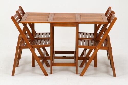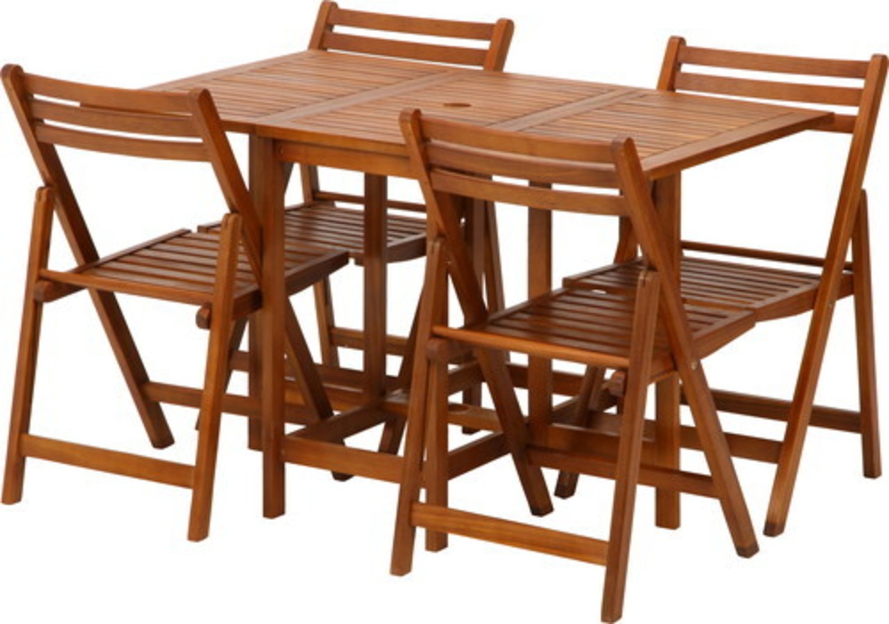 チェアは折りたたんでテーブルの天板下にまとめて収納することができます。