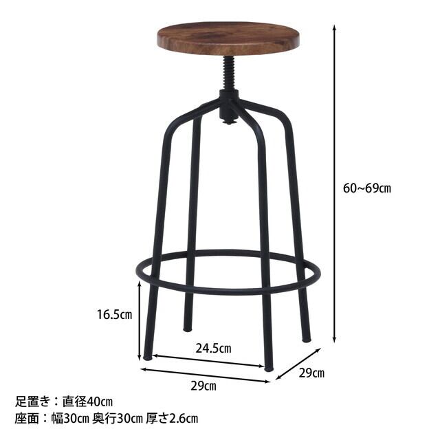 脚部にはリング状の足置きがあり足が宙に浮くことなく座ることができます。