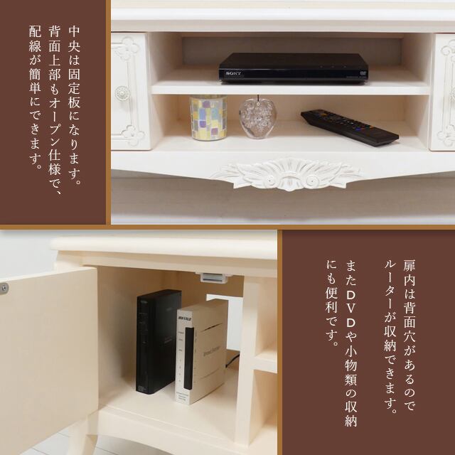 ◆扉内は背面穴があるので、ルーターが収納できます。また、DVDも収納できます。