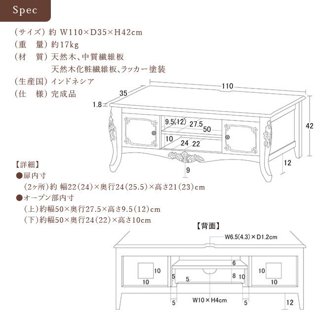 【商品サイズ】約 幅110×奥行35×高さ42cm