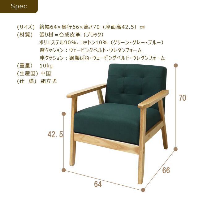 【商品サイズ】 約 幅64×奥行66×高さ70 (座面高42.5) cm