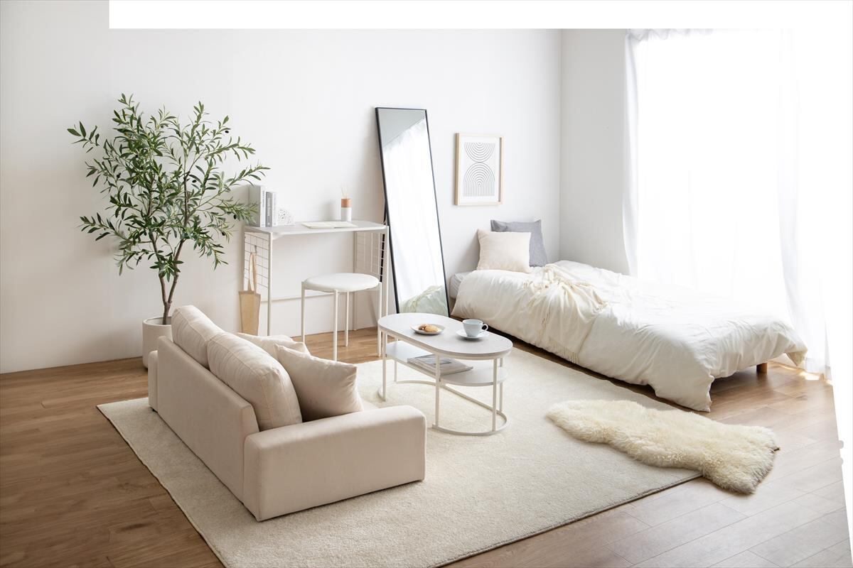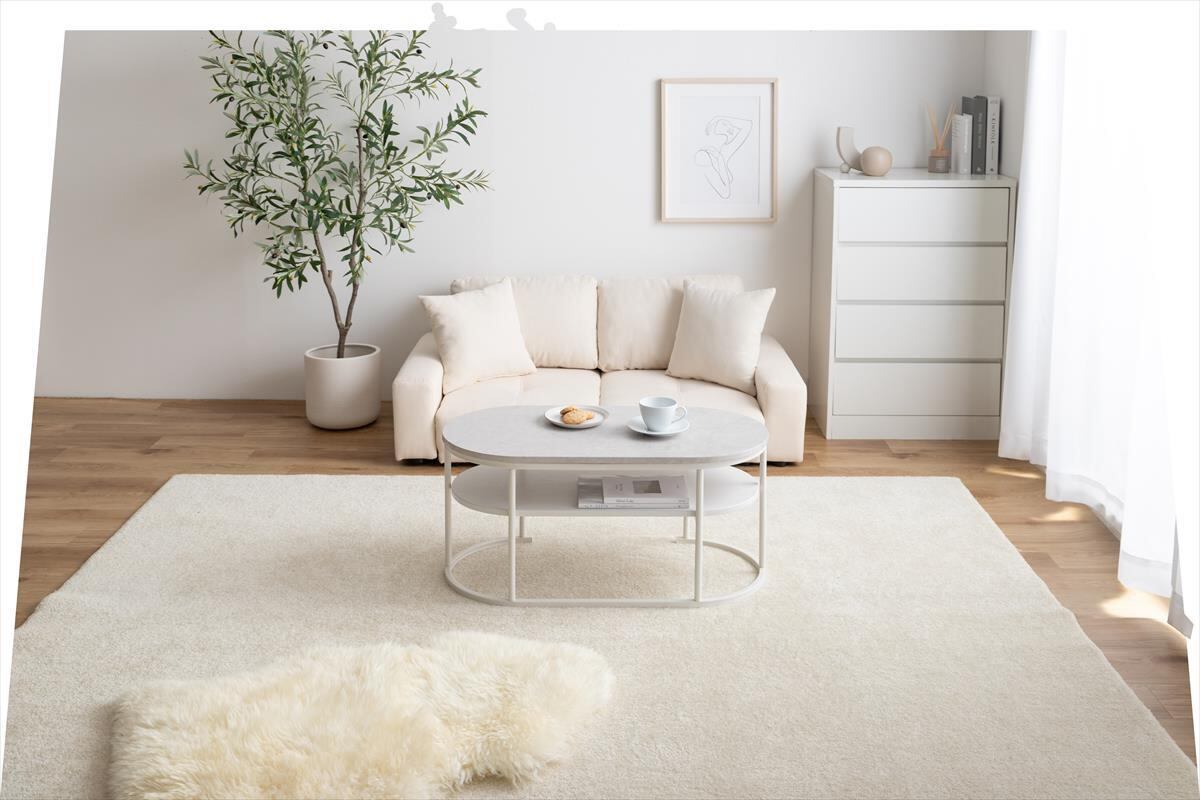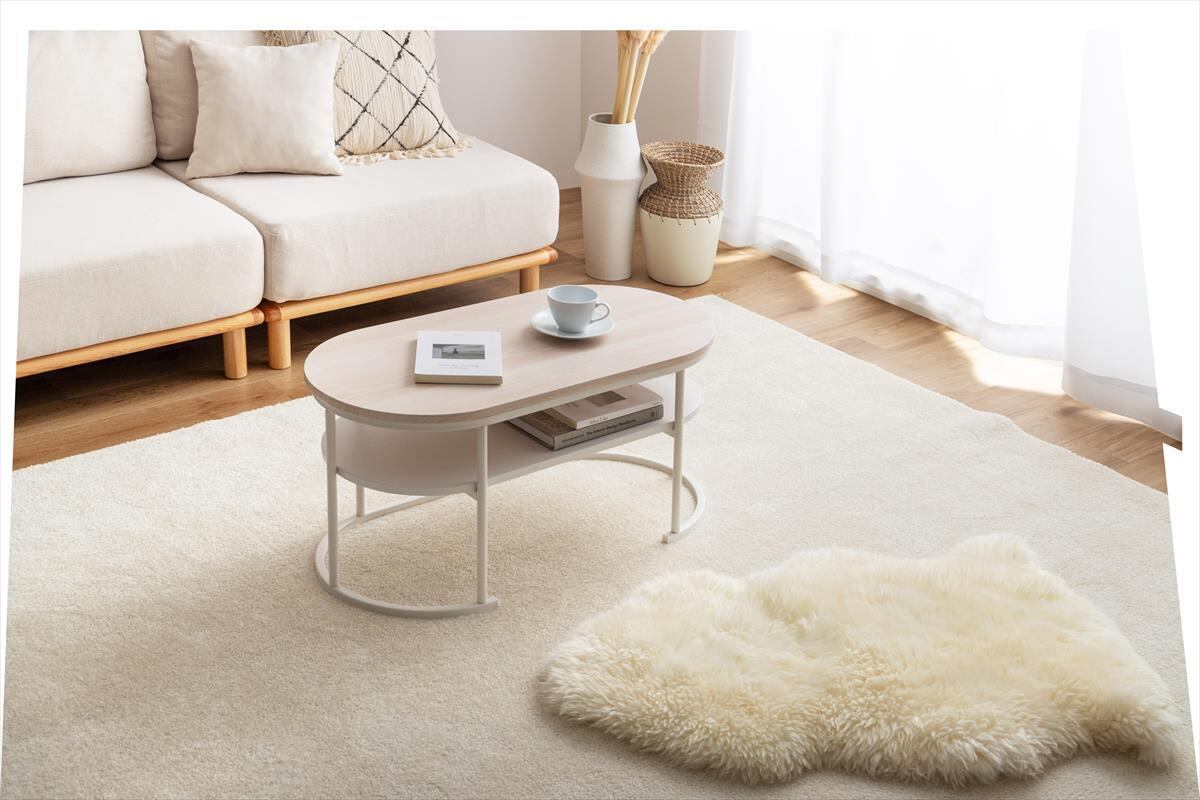 丸いフォルムがこなれた空間を演出する『Bamu(バーム)』棚付きセンターテーブル