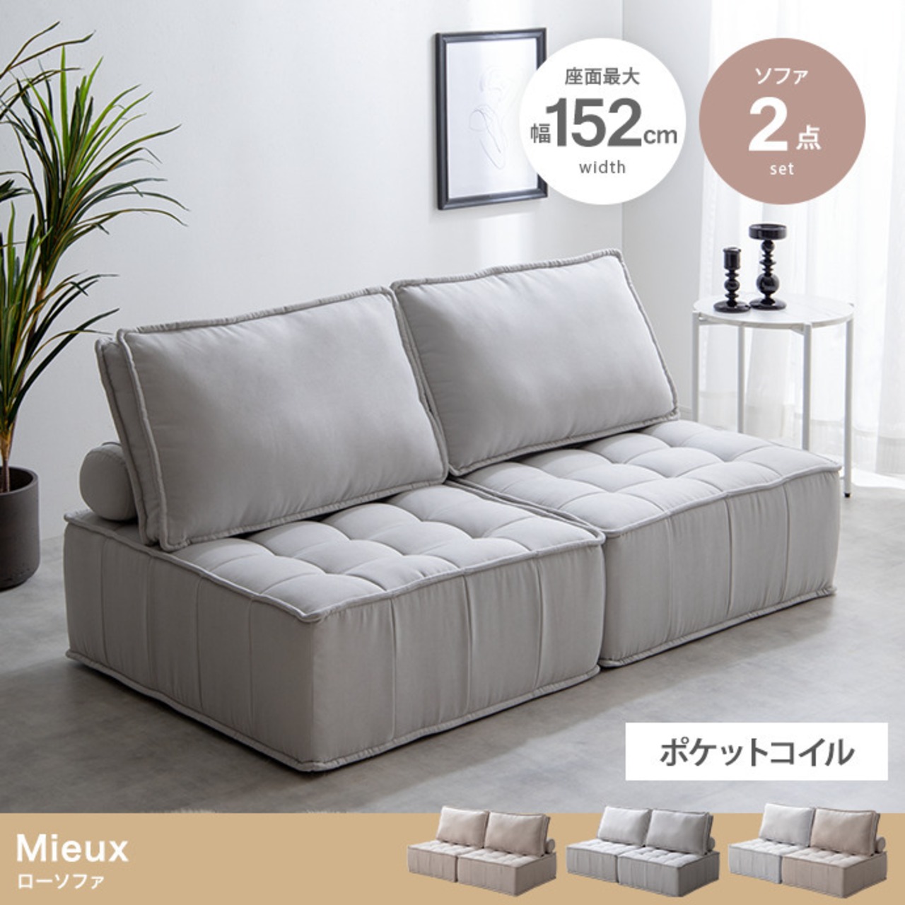 海外インテリアのような感度の高い空間を演出できる『Mieux(ミュー)』1人掛けローソファ2点セット