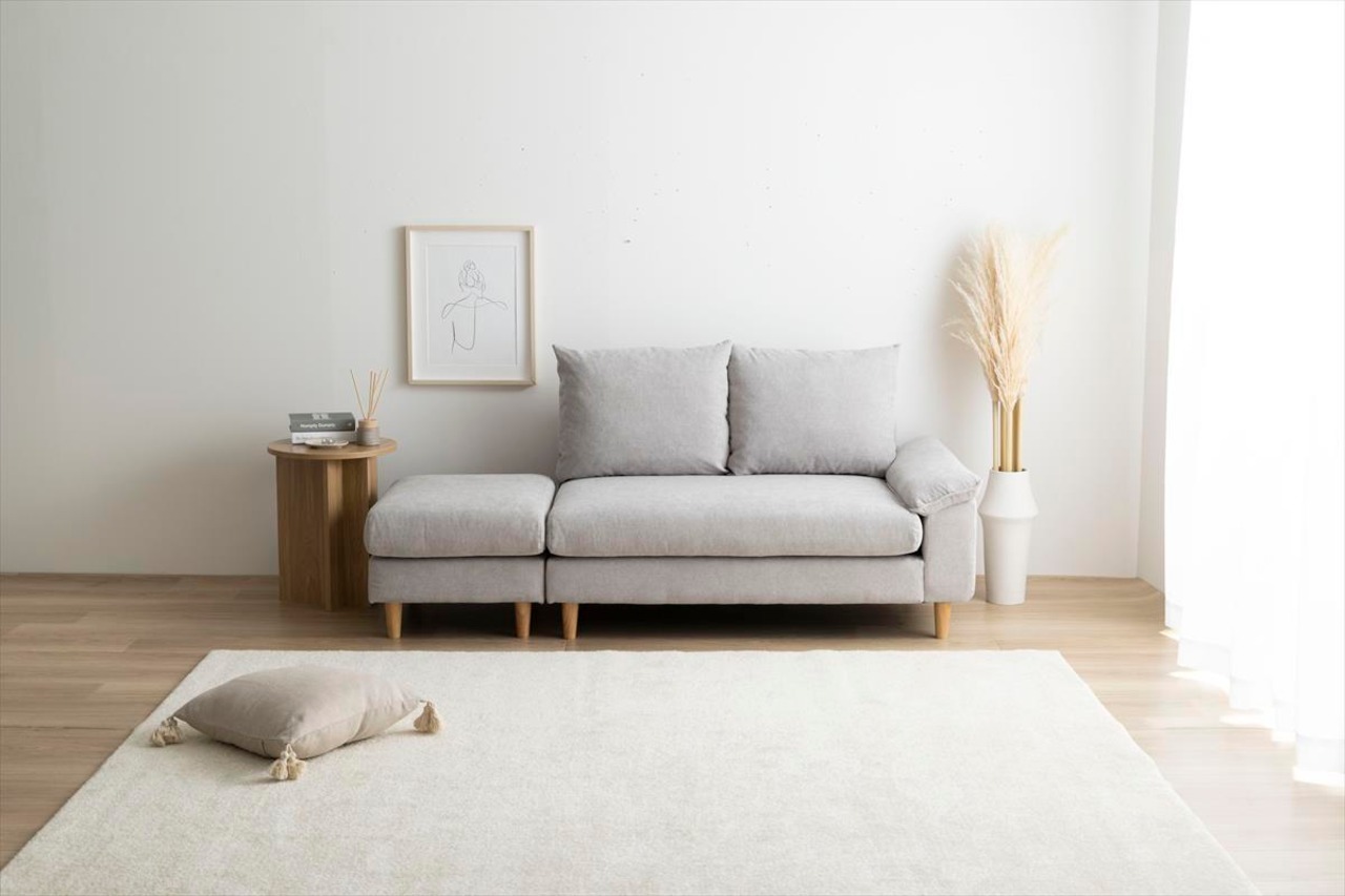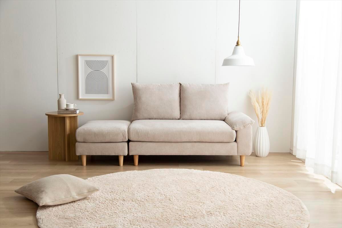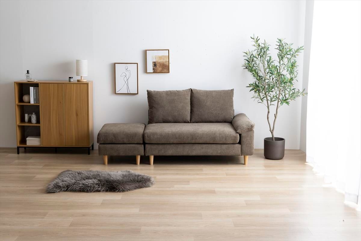 ゆったりごろごろくつろげる『Mellow(メロー)』オットマン付き2人掛けソファ