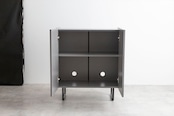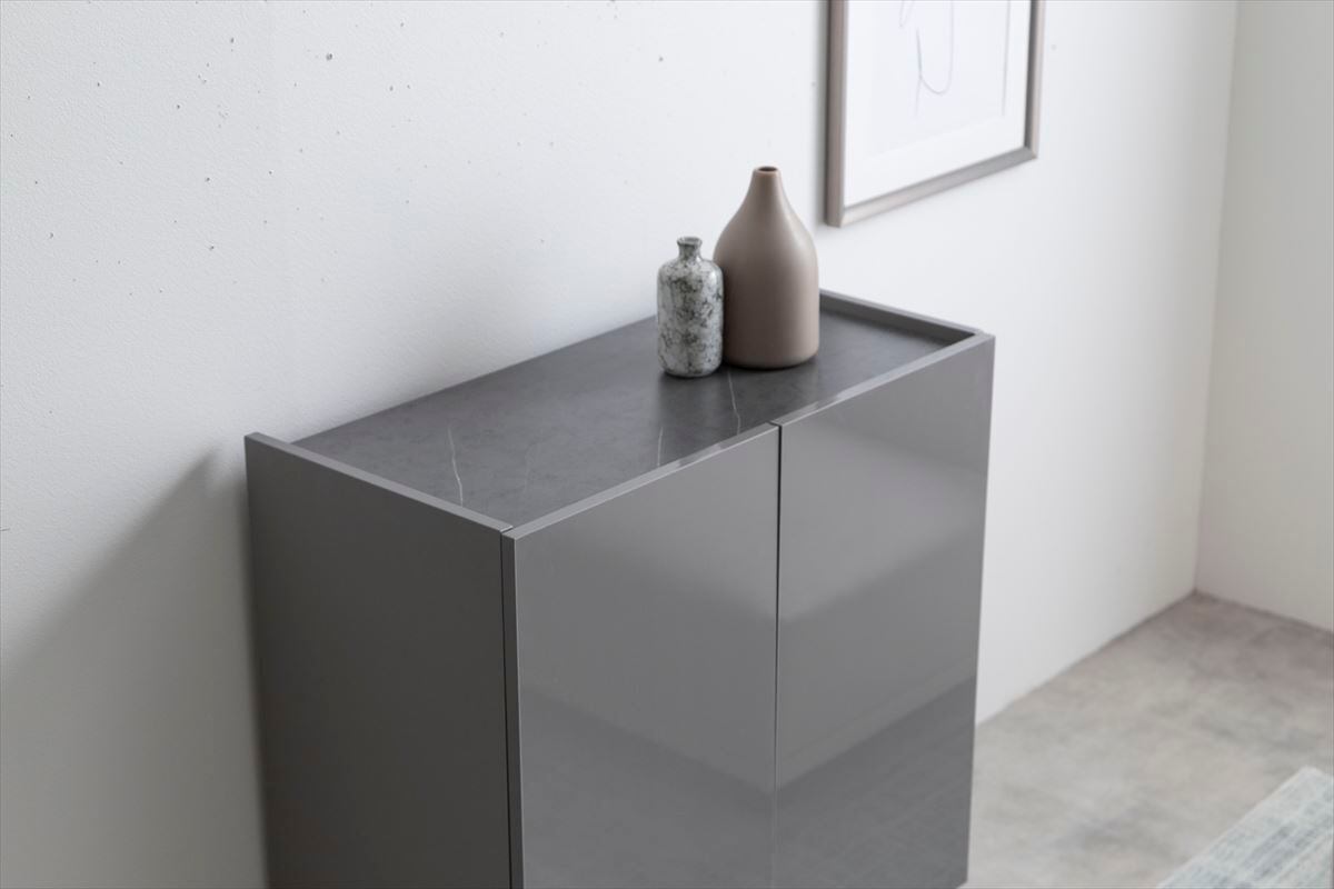 【グレー】本体:パーティクルボード、天板・側面:メラミンシート貼り、扉:鏡面貼り