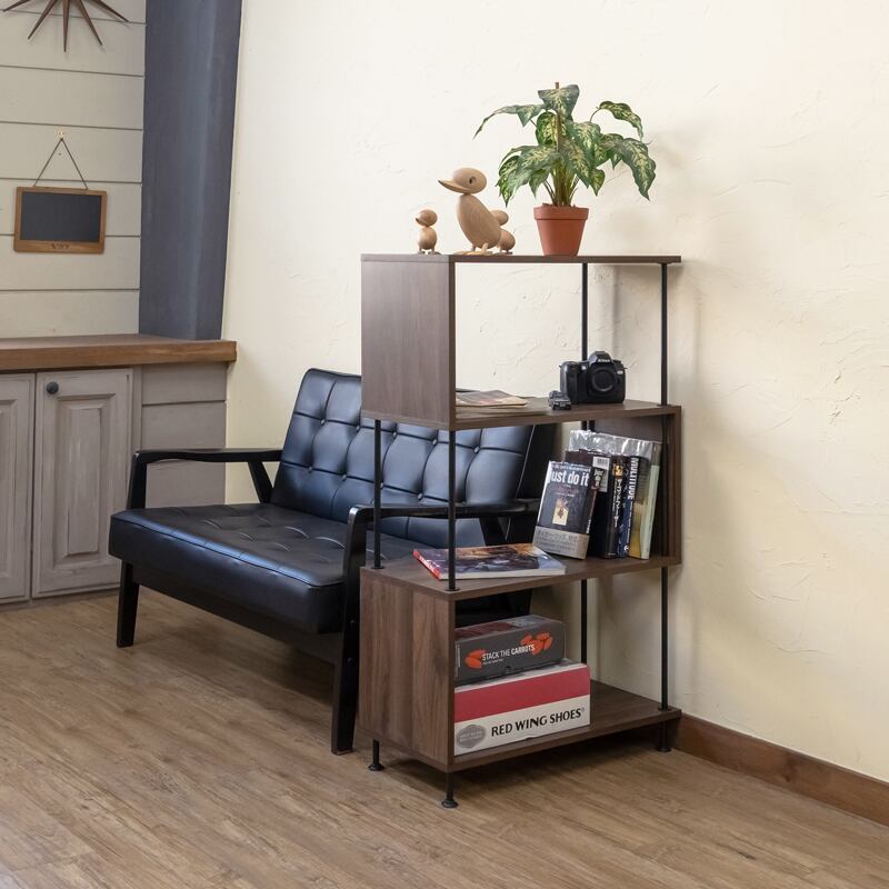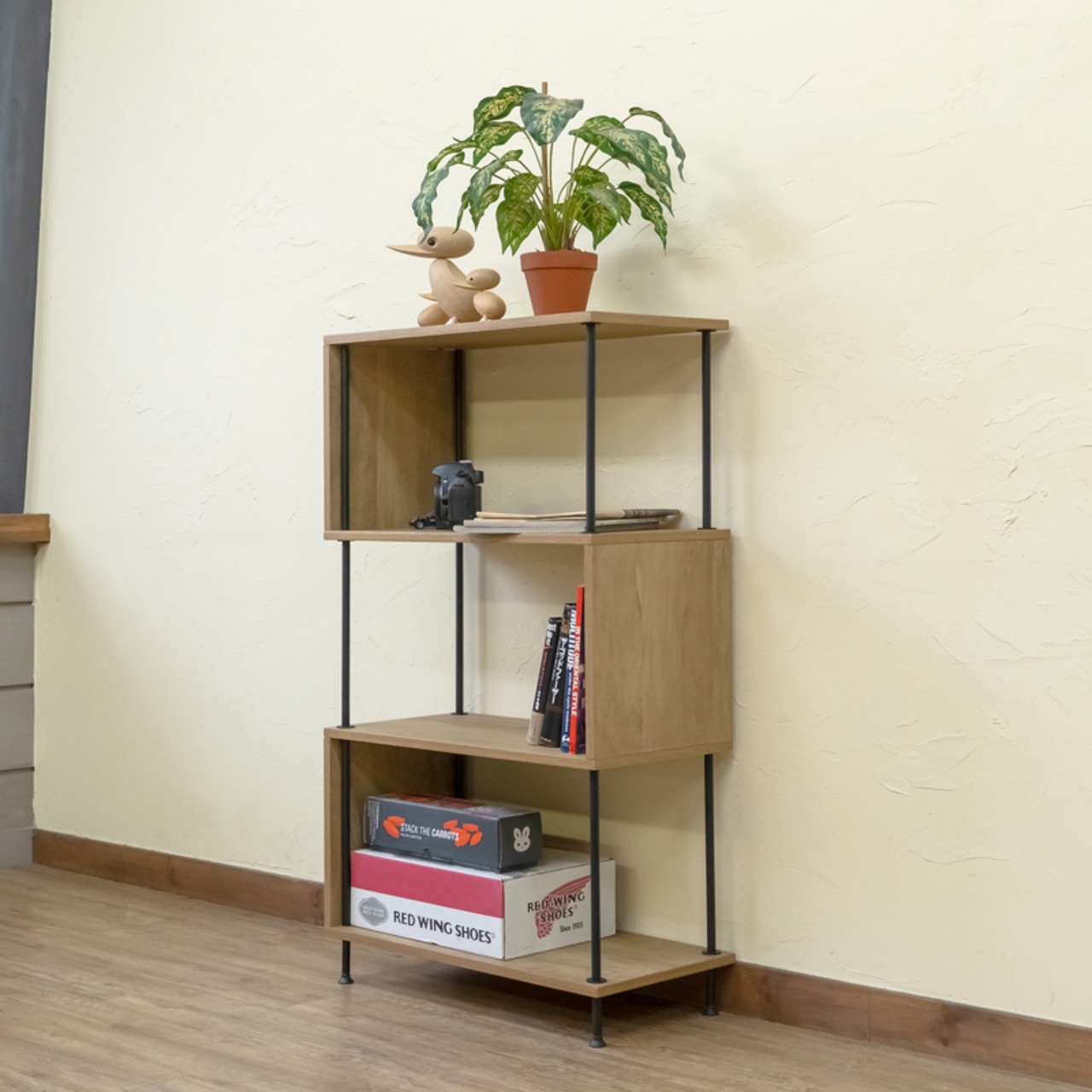 スリムなスチールフレームとヴィンテージテイストの木目調天板を組み合わせた、風通しがよく「見せる収納」を楽しむことができるオープンラック。