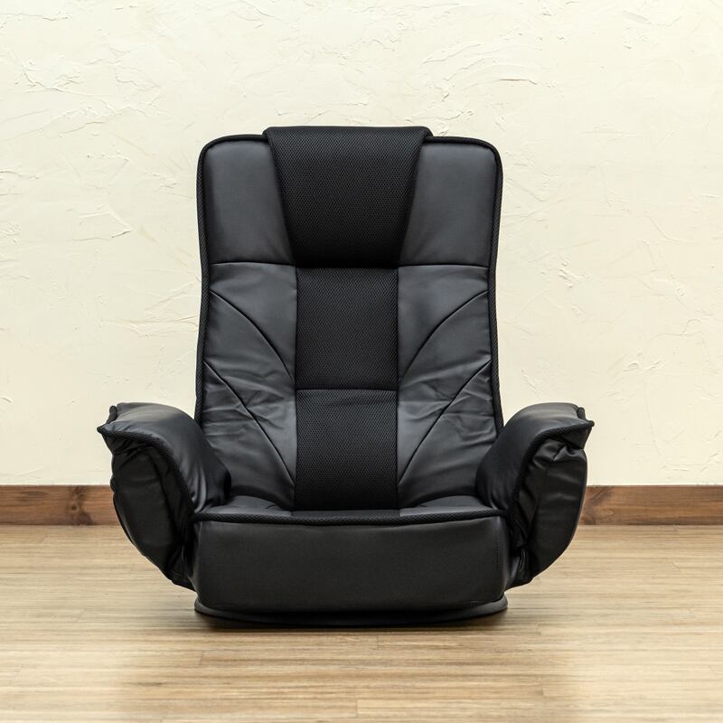 リクライニング機能&肘付きでゆったり過ごせる座面回転式のハイバック座椅子です
