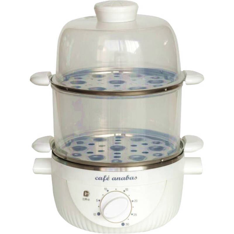 ゆで卵や蒸し料理を簡単に!【蒸す・温めるをこれ1台で】・とろとろ半熟・半熟・固ゆでをお好みに調理できるタイマー付。・ゆで卵は最大14個までつくれます。・ヘルシーで美味しい蒸し料理も簡単。・火を使わないから安心。・ステンレス2段トレー採用で清潔で臭い移りも安心。