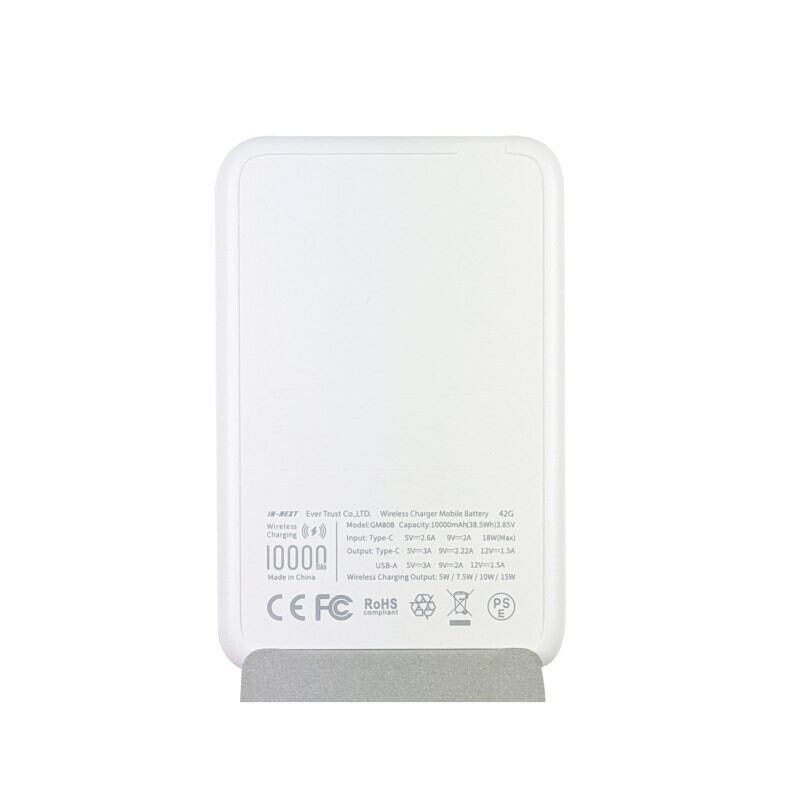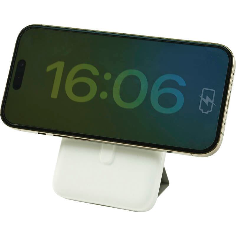 ・Magsafe対応の最大15Wワイヤレス充電搭載・ケーブル接続時最大18Wの急速充電対応・背面にスタンド付き・Type-C(入出力)とUSB-A出力ポート2個搭載・バッテリー残量表示付き・PSEマーク取得